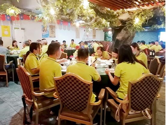 在聚餐期间,董事长对全体员工致词,感谢大家为公司所做出的贡献。我们向领导敬上了满怀深情的佳酿,载着无限的暖意,使整个聚会其乐无穷。