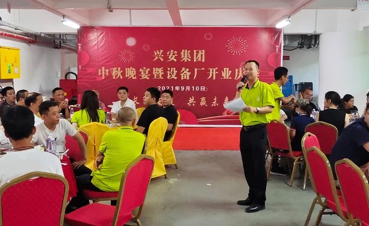 2021年9月10日兴安集团中秋晚宴暨设备厂开业庆典在飞极速在线手机版消防设备厂举行。
