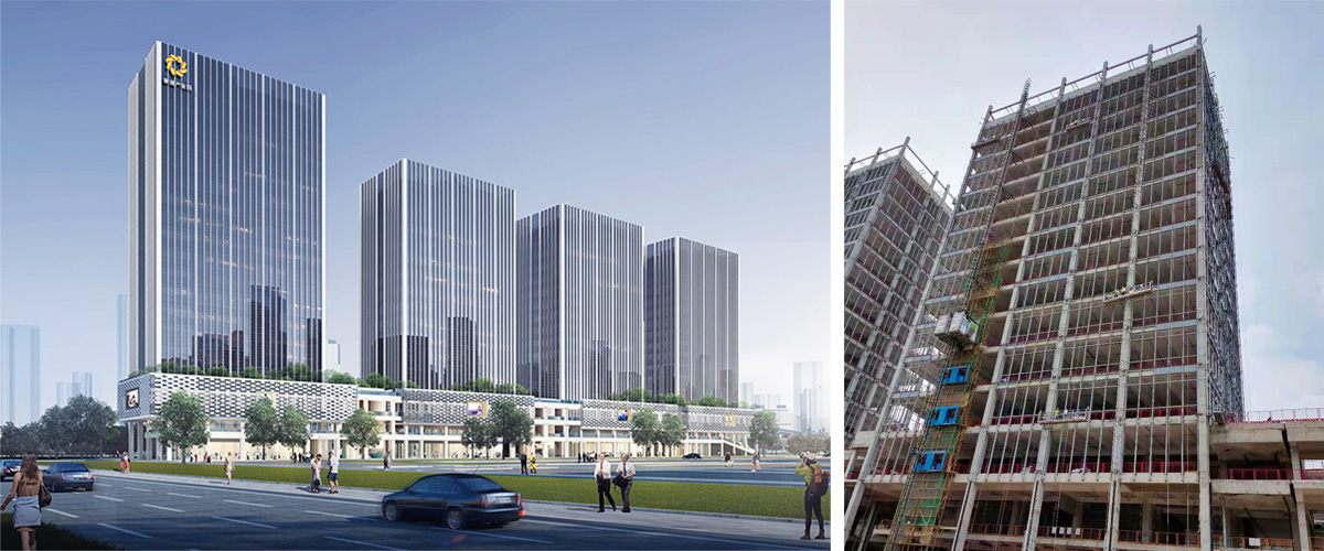 联建产业园项目,建设用地面积约2. 4万㎡,总建筑面积约16.8万㎡,共有4 栋高层工程建筑(A栋18层,高96.6m; B、C、D栋16层,高85. 8m),地下室共3层,相互连通,裙楼共3层,相互连通。主体结构框架形式,外墙为玻璃幕墙。