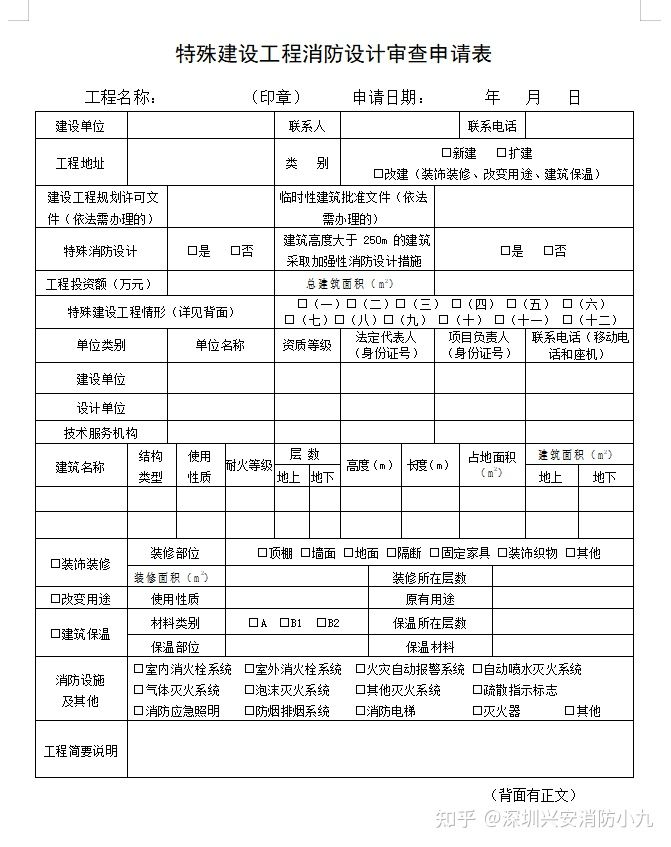1、填写特殊建设工程消防设计审查申请表(如下图)