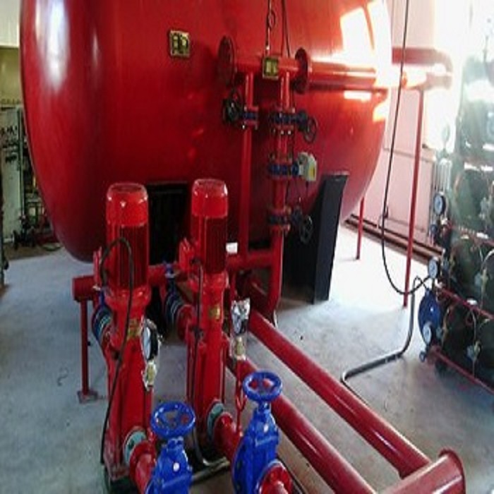 4、稳压泵由就地压力开关(三位)控制,使系统压力维持在一定的范围内,当超高或超低压力时均停泵。另外,喷淋(大空间)水泵起动后,应自动停稳压泵,超低的压力信号也可作为起动喷洒水泵的后备条件之一。