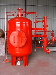 系统是由固定泡沫混合液泵(或水泵)、泡沫比例混合器、泡沫液储罐、单向阀、闸阀、过滤器、泡沫混合液管、喷头、水源、探测器等组成。